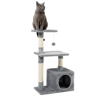Color Neutro (Gris Claro): El color gris claro es neutral y se adapta bien a la mayoría de los entornos domésticos. Esto permite que el árbol rascador se integre armoniosamente en la decoración de cualquier hogar.