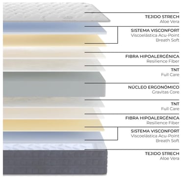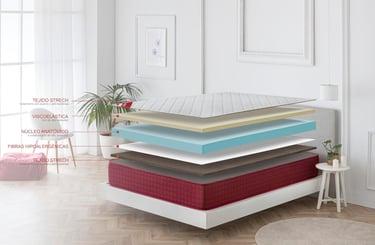 Tecnología Viscoelástica: La presencia de material viscoelástico generalmente proporciona una mayor adaptabilidad al contorno del cuerpo, aliviando puntos de presión y mejorando la comodidad durante el sueño.