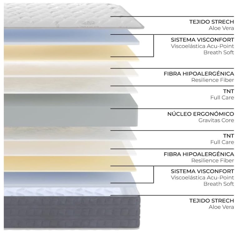 Combinación de Materiales: La combinación de espuma y viscoelástica puede ofrecer una buena combinación de soporte y confort.